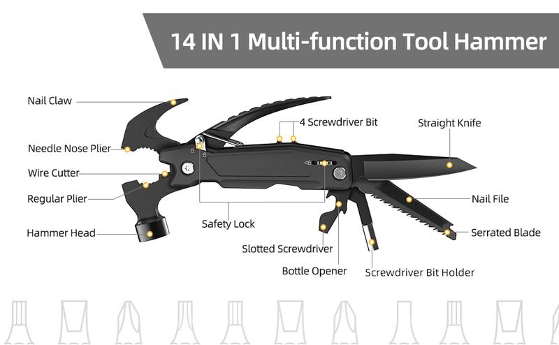 14-in-1 Compact Multitool Hammer with Bit Set & Safety Lock
